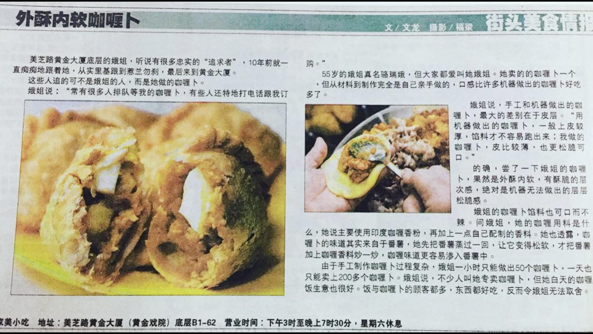 She explains: “The biggest difference between handmade and machine-made curry puffs is the crust. Curry puffs made by machines usually have thicker skin, so the filling doesn’t release its flavor easily. The ones I make have a thinner crust, and are crispier and more enjoyable to eat.”